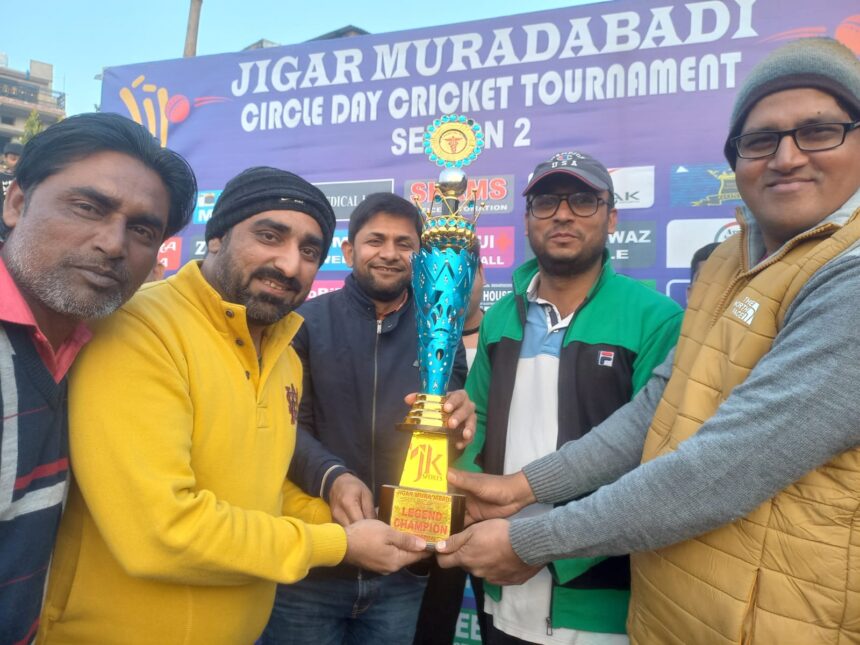 जिगर मुरादाबादी डे सर्किल टूर्नामेंट में लीजेंड कप के लिए सोमवार को फाइनल मैच हुआ जिसमें टीम इन्फोटेक ने टॉस जीतकर पहले बल्लेबाजी करते हुए इरफान अख्तर, अरशद अंसारी और कप्तान फैज़ रज़ा सिद्दीकी की बेहतरीन बल्लेबाजी की बदौलत 06 ओवर में 34 रन का लक्ष्य विपक्षी टीम के सामने रखा।